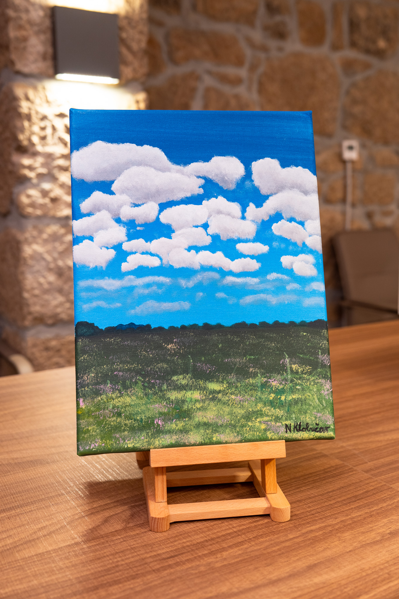 Fokus i Tehnika Tradicionalni slikarski postupci: Slikarstvo i promatranje: Prebacivanje promatranog neba (vanjski rad, bez ekrana) na platno. Spoj vizualnog opažanja i slikarske interpretacije.